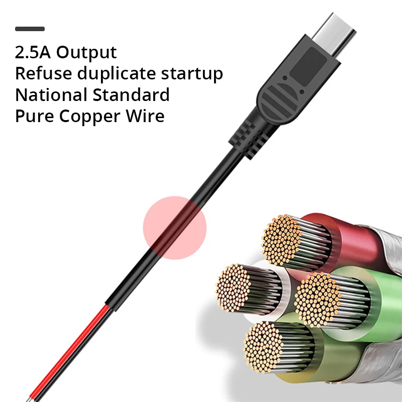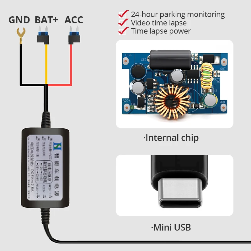 خط باك لكاميرا داش مرآة الرؤية الخلفية 24 ساعة مراقبة مواقف السيارات ضربة أسفل خط 3.5 متر USB صغير نوع-C طقم أسلاك شاحن سيارة