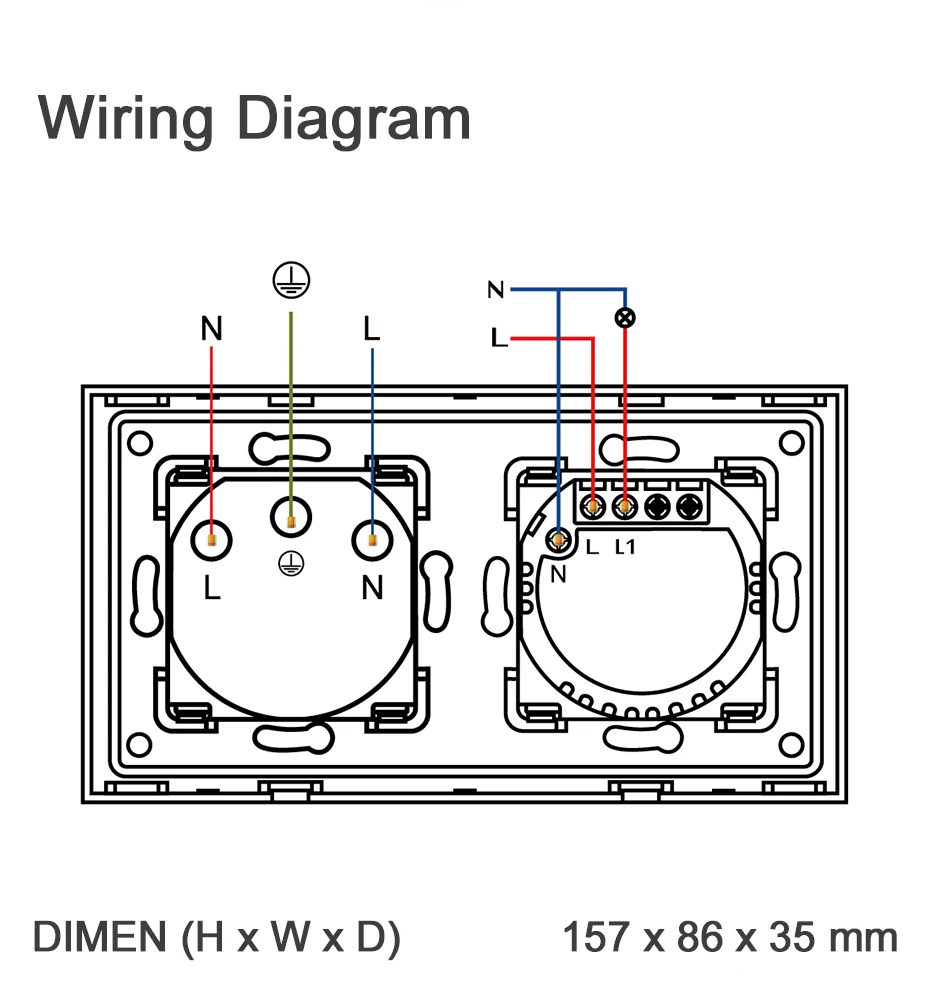أ :سيتم تشغيل الإضاءة الخلفية الزرقاء عندما تنجح الأسلاك.مما يسمح لك بملاحظة مفتاح اللمس الخاص بنا بوضوح في الظلام.