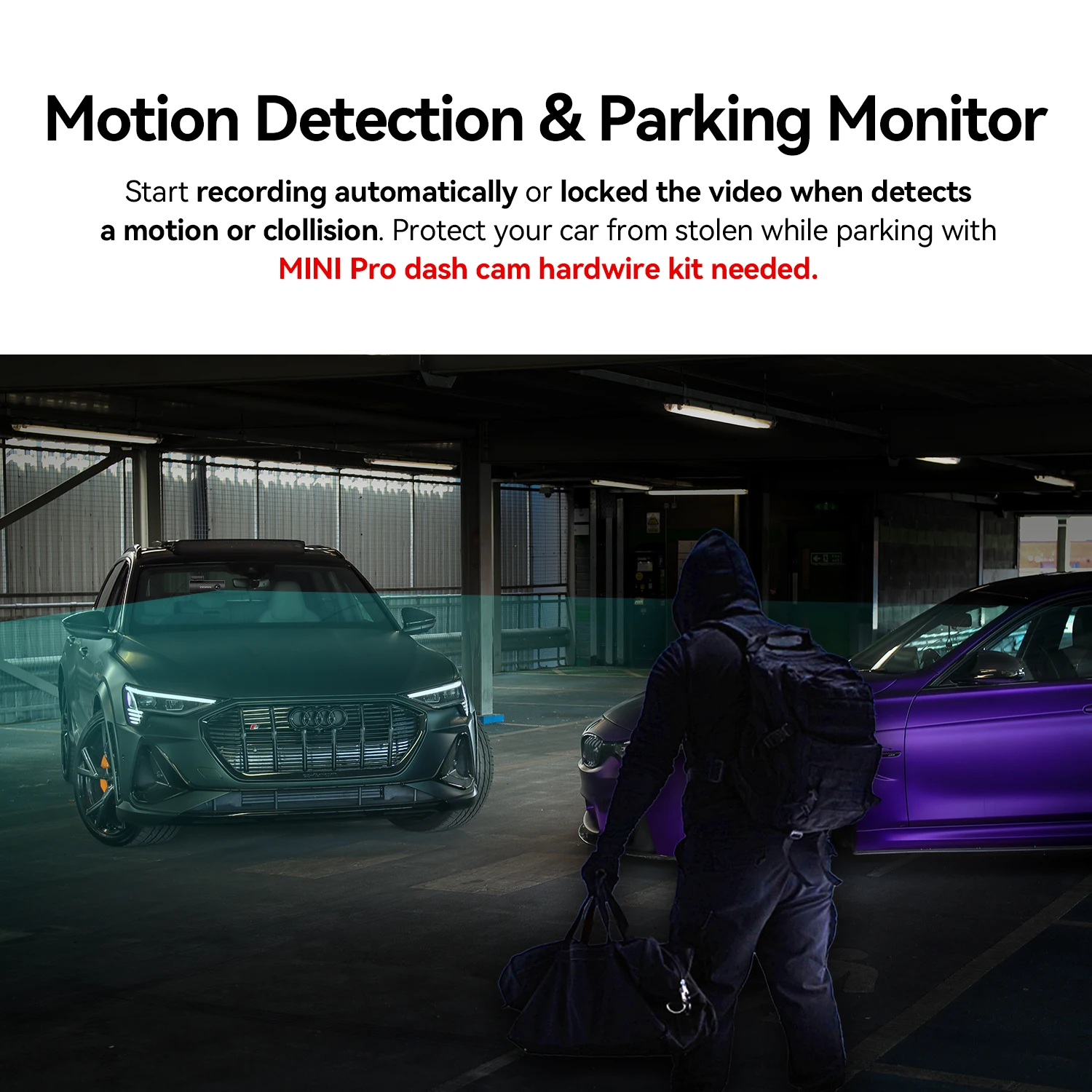 سوف يلتقط MINl Pro صورًا وتسجيلات فيديو بمجرد أن يكتشف مستشعر الجاذبية المدمج فرامل الطوارئ أو الاصطدام، ويخزنها تلقائيًا في مسافة منفصلة لمنع الكتابة فوقها بواسطة مقاطع الفيديو اليومية، مما يسهل التنزيل لتجميع الأدلة في أي وقت.
