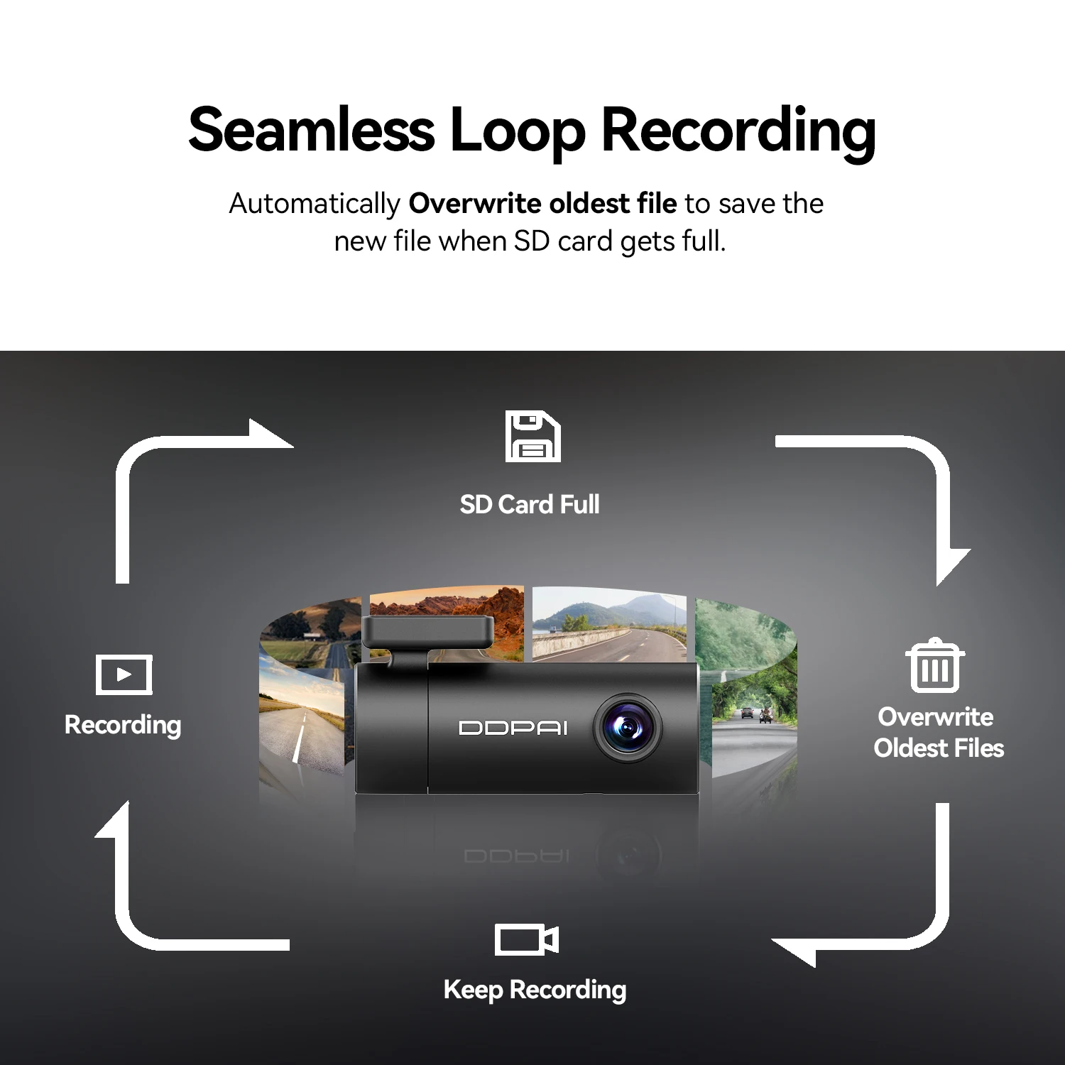 يبدأ تسجيل الحلقة بشكل متزامن مع السيارة.سيتم استبدال مقاطع الفيديو السابقة تلقائيًا بمجرد امتلاء بطاقة SD، مما يحررك من الحذف اليدوي.