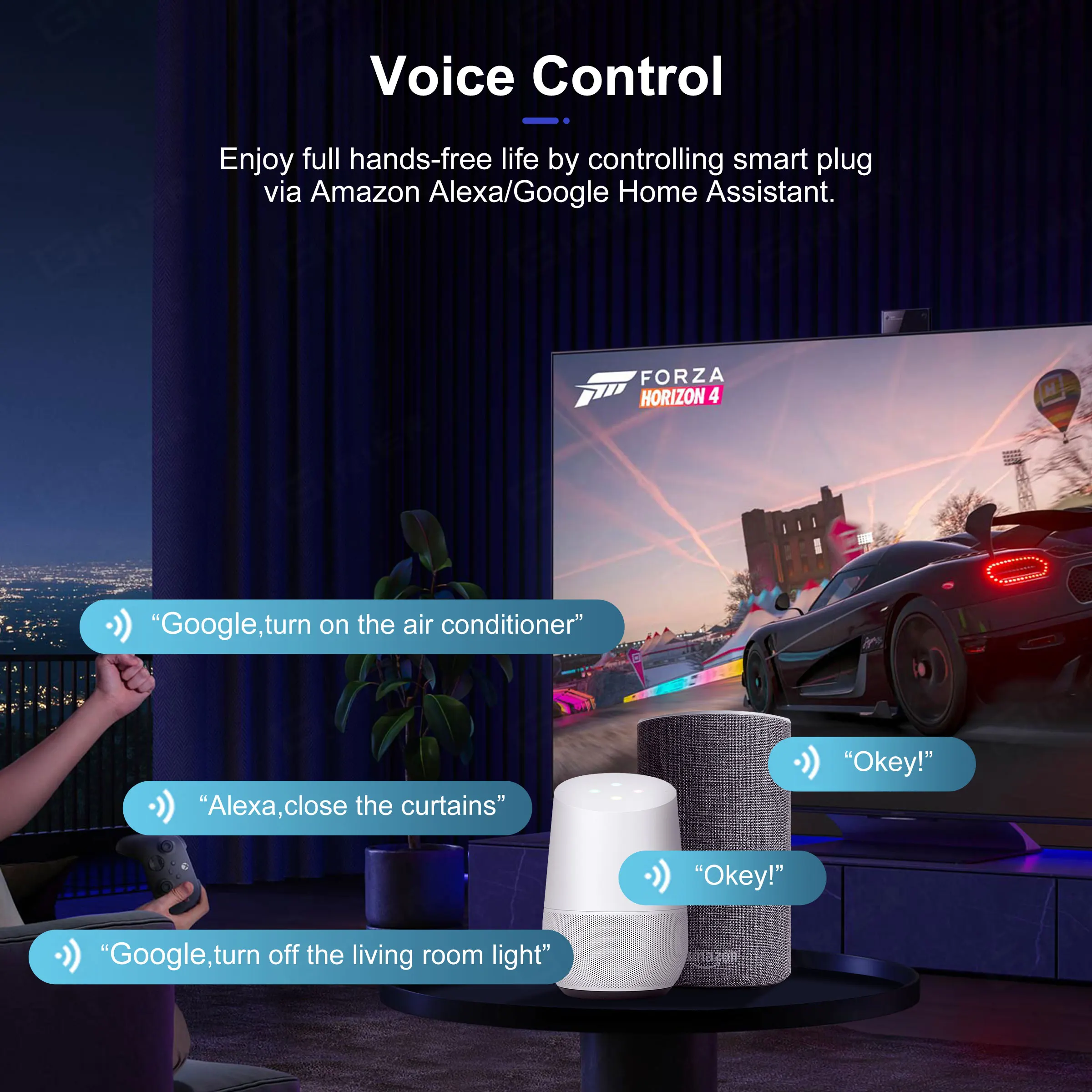 يتحكم الصوت في المقبس الذكي بواسطة Alexa/Yandex Alice/Google Home Assistant.كل ما عليك فعله هو إعطاء أمر بسيط “يا جوجل، أطفئ ضوء غرفة النوم”، واستمتع بحياتك أسهل وأكثر ذكاءً.