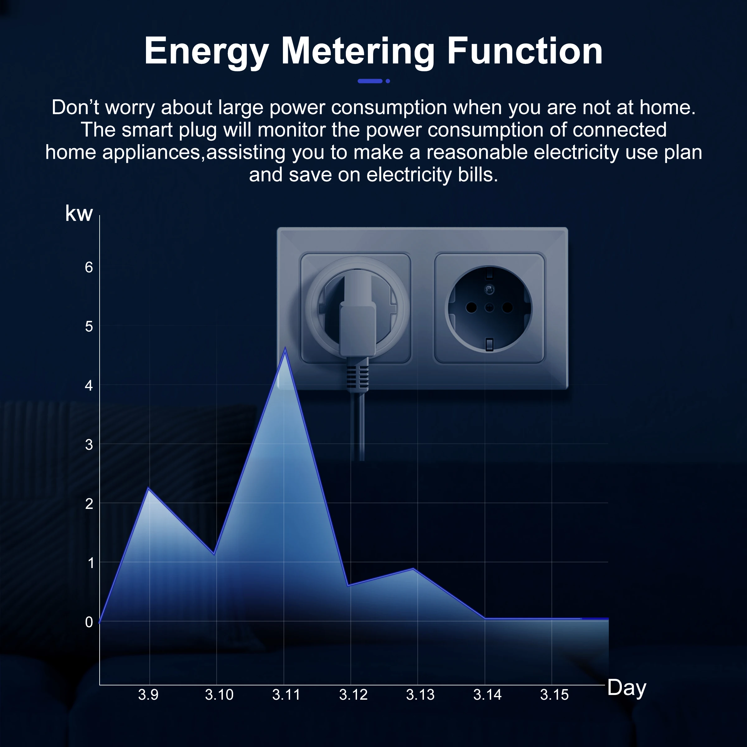 لا تقلق بشأن استهلاك الطاقة الكبير غير المعروف للأجهزة المنزلية المتصلة بالمقابس الذكية، يمكنك بسهولة عرض استهلاك الطاقة في التطبيق، مما يساعدك على وضع خطة معقولة لاستخدام الكهرباء وتوفير فواتير الكهرباء.
